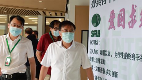 市委领导一行来到我校初中部查看,听取罗来金校长学校对开学准备 工作的汇报。王伟中察看了初、高中线上巡课以及教学情况。